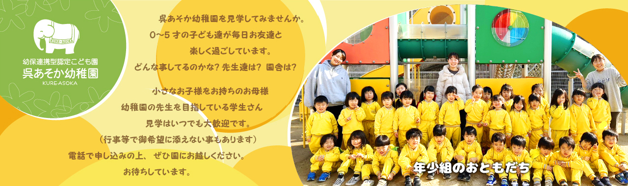 呉あそか幼稚園 呉市清水1丁目10-25 TEL:0823-25-5671 / FAX:0823-25-5683 E-mail:kure-asoka@train.ocn.ne.jp